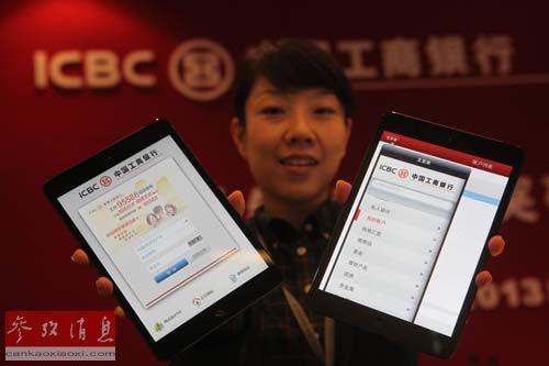 资料图片:2013年3月21日,工商银行工作人员在展示工行移动银行客户端。新华社记者邢广利摄