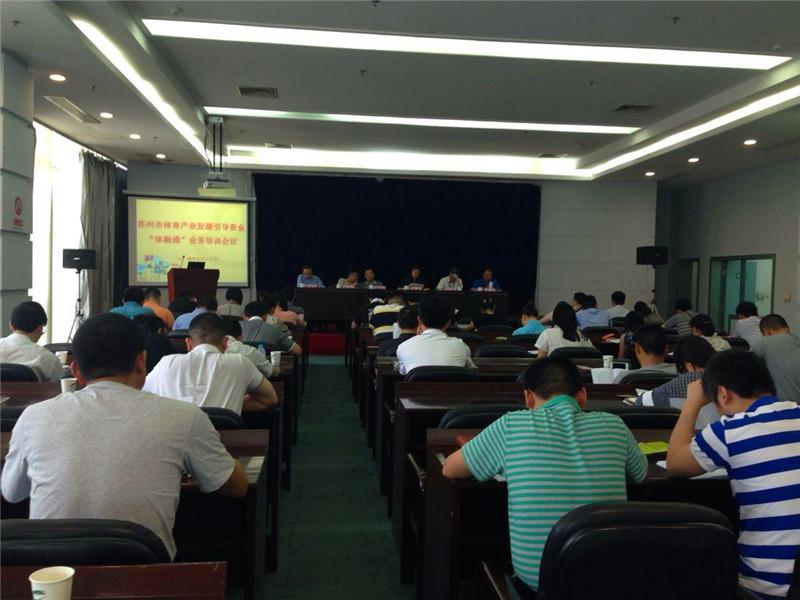 为推动苏州市体育产业的发展,宣传推广“体融通”融资担保业务,5月30日上午,市体育局在苏州市体育中心体育场新闻发布厅召开了体育产业引导资金“体融通”业务培训会议。苏州农业担保作为培训方之一应邀参加了此次培训,并负责就“体融通”贷款担保业务申报审批流程向参会人员和企业家代表作详细讲解。市体育局副局长袁永球、体育经济产业处处长彭艳、市体育总会秘书长邓一国、社体中心副主任陈斌,以及合作银行中信银行和各区体育行政部门产业科室负责人及市区内各体育场馆负责人、部分企业家代表参加了会议,会议由邓一国秘书长主持。
