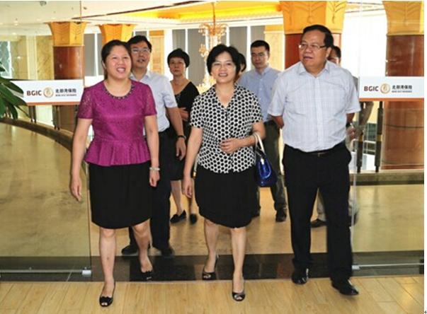 在金融集团党委副书记、副董事长、总经理兼北部湾保险公司董事长李燕(左一)陪同下深入金融集团调研