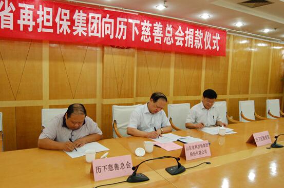 7月3日上午,山东省再担保集团有限公司向济南历下慈善总会定向捐赠签约仪式在济南市历下大厦举行。公司总经理王葆奎代表公司向济南历下慈善总会进行了捐赠,济南市历下区副区长、济南历下慈善总会会长尹红梅代表济南历下慈善总会接受了捐赠。公司党委副书记黄利与济南历下慈善总会副会长李长征、济南市历下区教育局副局长康玉平共同签署捐赠协议。捐赠仪式由济南市历下区民政局局长、历下慈善总会副会长苏凤清主持。公司及历下区政府有关职能部门负责人参加了仪式。