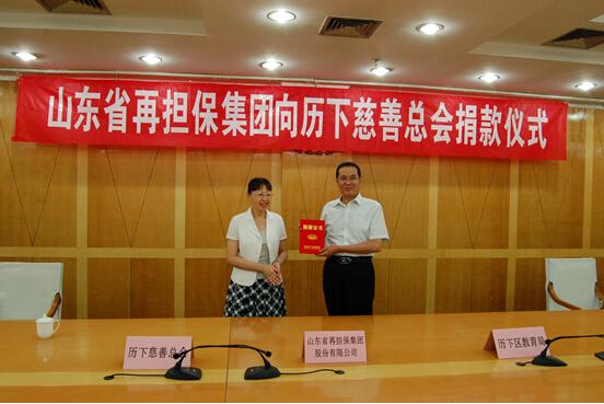 公司成立五年来,在自身快速发展的同时,积极履行社会责任,先后以各种形式参与、支持社会公益事业,进行慈善捐赠和救助,赢得了社会各界的广泛赞誉。作为回馈社会的一种形式,公司通过向济南历下慈善总会定向捐赠,在济南市历下区教育局设立 “山东省再担保助教助学金”,专项资助济南市历下区特困师生,以此进一步发挥国有企业在履行社会责任、支持社会慈善事业发展方面的表率作用,积极传导“关注教育、奉献爱心”的正能量。