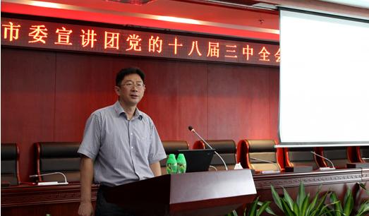 为学习好、宣传好、贯彻好十八届三中全会精神,发挥国企力量,把改革开放事业继续不断向前推进,日前,高新投集团特邀深圳市委党校校务委员袁晓江教授作“市委宣讲团党的十八届三中全会精神报告会”,集团上下参加学习超过300人。通过深入浅出的方法,袁晓江教授对《决定》的框架结构进行了条理清晰的介绍,其中还特别强调:三中全会涉及到全面深化改革,必将对我国各领域,特别是经济领域的改革和发展产生深远影响,我国的经济政策和走向将会发生重大变化。通过学习,员工进一步明晰党和国家对产权保护、混合所有制、市场公平开放透明、城乡统一建设用地、金融市场、农业转移人口市民化的等方面的未来改革方向,对今后个人工作的开展和公司业务经营管理均具有宏观方面的指导意义。