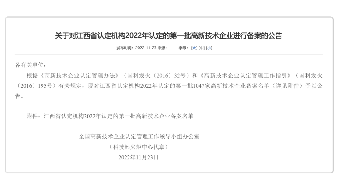 近日,高新技术企业认定管理网对外公布了《江西省认定机构2022年认定的第一批高新技术企业备案名单》,江西华章汉辰融资担保集团股份有限公司(以下简称华章汉辰)榜上有名。据“高新技术企业认定管理工作网”数据显示,目前全国范围内通过该认定的融资担保企业仅有一家,华章汉辰将作为全国第二家纳入其中,并成为全国第一家兼具AA+信用评级的国家高新技术担保企业。
