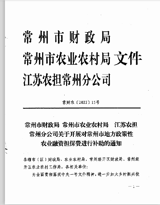 (自2021年3月1日起,对省农业融资担保有限责任公司在常州地区开展的农业融资担保业务所发生的担保费用给予全额补助。今年3月,经过三轮政策修订,常州零保费新政在全省首个实现建立由市、辖市(区)两级财政共担机制,为零保费政策的持续实施提供了科学的多层级资金保障。)