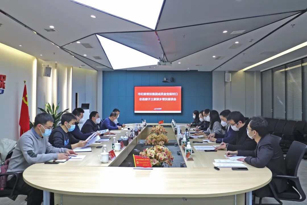 近日,重庆市纪委监委帮扶集团驻忠县磨子乡工作队队长严正一行来重庆三峡融资担保集团股份有限公司(以下简称重庆三峡担保集团)控股子公司金宝保座谈交流。重庆三峡担保集团副总裁、金宝保董事长陈苏苏,集团党委委员、纪委书记、监察专员杨勋平,金宝保总经理邱珂等参加座谈。