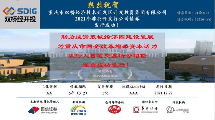 2021年12月,由甘肃省融资担保集团股份有限公司(以下简称甘肃担保集团)承保的成都市瀚宇投资有限公司2021年非公开项目收益企业债券、泸州市高新投资集团有限公司2021年第一期中期票据、重庆市双桥经济技术开发区开发投资集团有限公司2021年非公开发行公司债券相继发行成功。