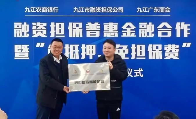 近日,九江融担公司与九江广东商会就融资担保普惠金融进行合作签约。签约仪式上,九江融担公司为九江广东商会优质会员企业进行授牌,为诚信企业增信赋能。