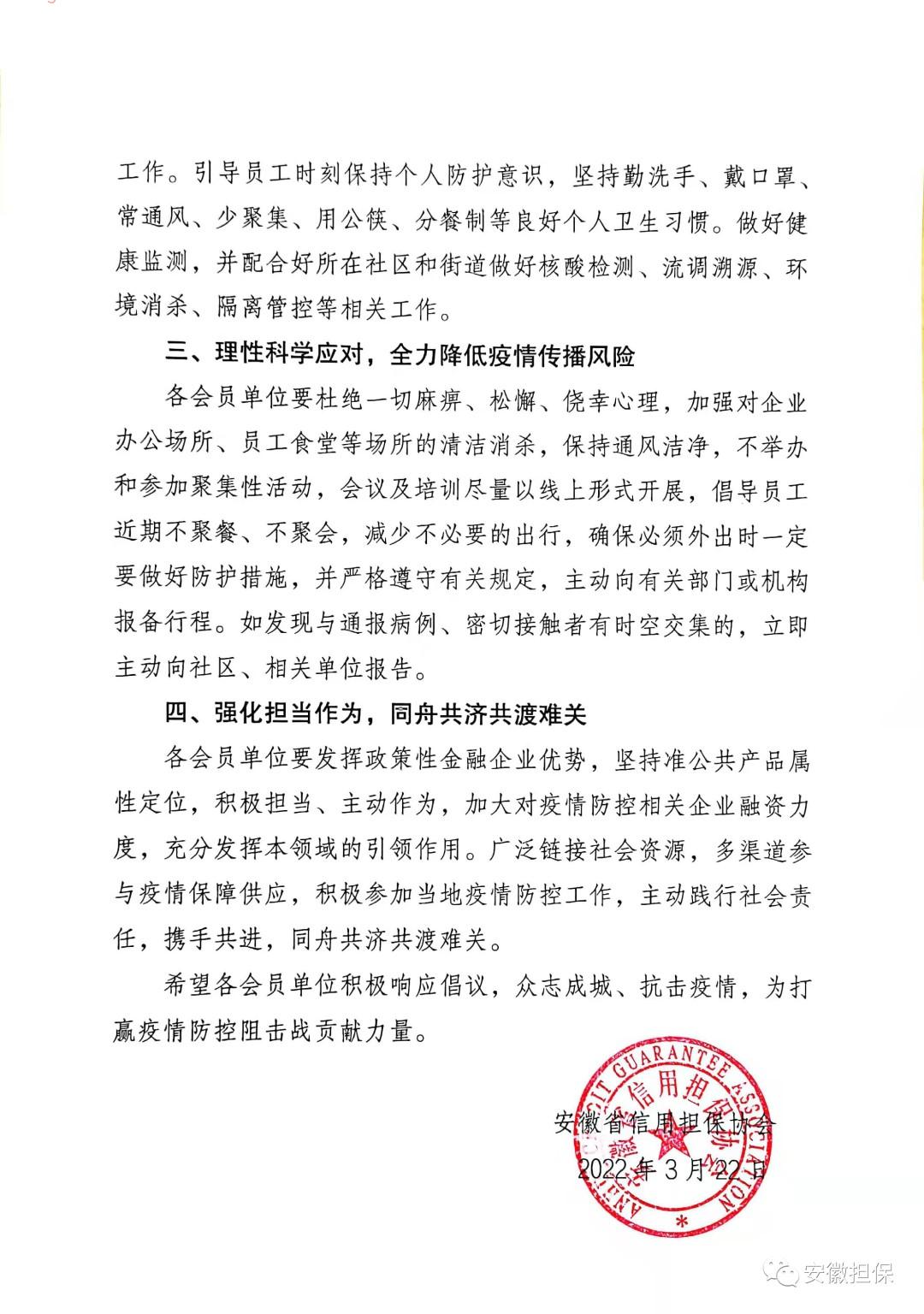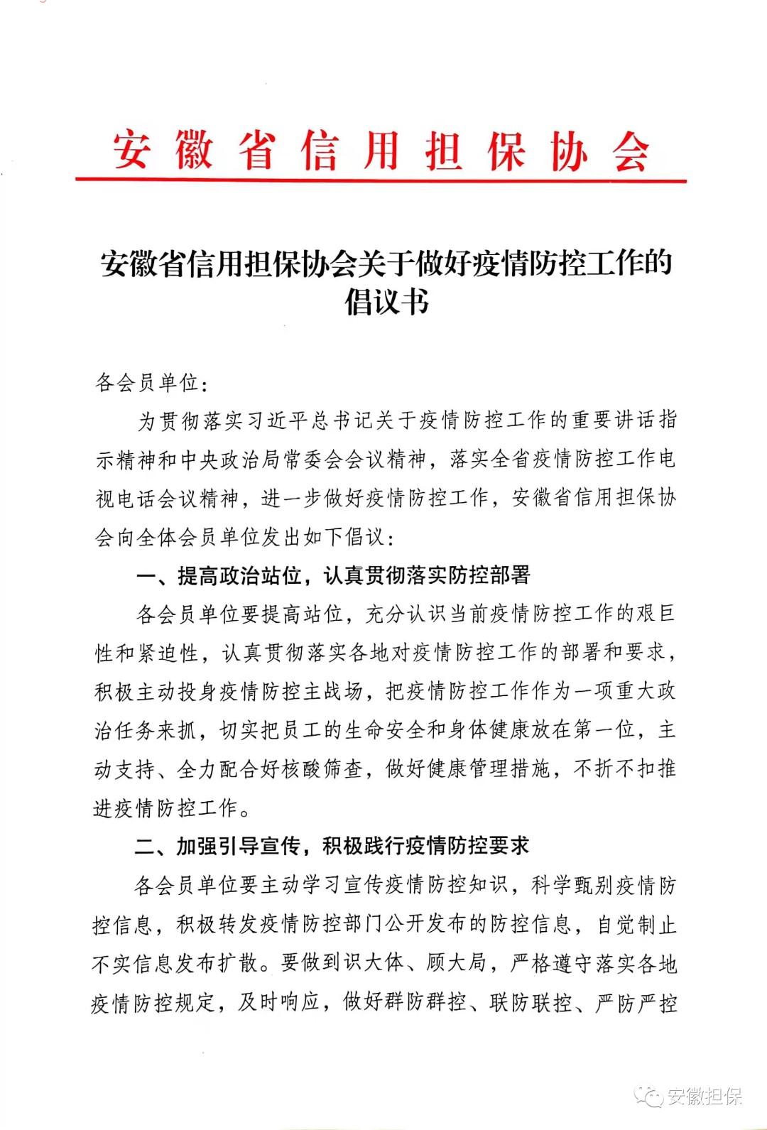 安徽省信用担保协会关于做好疫情防控工作的倡议书