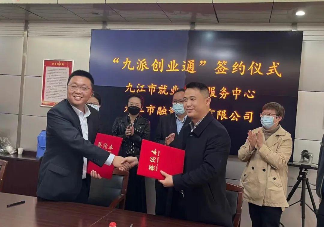 3月30日下午,在九江市人社局的大力支持和指导下,九江市就业创业服务中心与九江市融资担保有限公司签订合作协议,专项针对全市创业孵化基地的大学生创业主体,提供“免抵押物、免担保费、创业担保贴息”的政府性融资担保服务——九派创业通,多措并举支持和助推大学生就业创业。