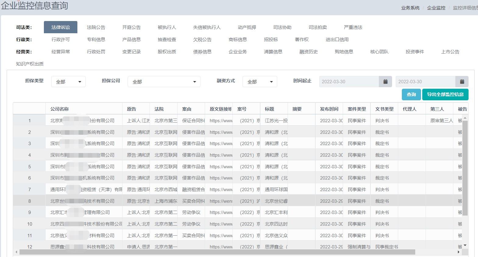 推动北京融资担保行业数字化转型。一是积极对接国家融担基金数字化平台,完成数据接口开发工作,根据国家融担基金最新要求,完成合作担保机构纳入申请、再担保公司开函管理等功能的优化工作,同时为合作担保机构提供企业主要信息的批量化校验核实功能,进一步发挥国担基金北京数据分中心的作用。一季度实现首创担保、海淀担保、亦庄担保等15家合作担保机构的项目纳入申请、机构月报导入和保后管理等功能,截至一季度末,已受理17604笔、147亿元的再担保项目纳入申请。二是为合作担保机构开发企业“三要素”信息核验功能,结合再担保业务系统对纳入的10000余户企业进行的包括工商、诉讼、失信被执行、抵质押、严重违法、经营异常等35个种类的实时信息监测,一季度已监测到75000余条企业变化信息,既提升了各家担保公司报送数据质量,又实现了再担保业务信息监测自动化、可视化,可有效提升风险监测水平,进一步促进中小微企业融资健康发展。通过数字化大幅提高再担保上连中央、下接辖内担保公司的精准化纳入水平,北京再担保主业第一季度新增规模107亿,较去年同期增幅超过30%;第一季度从国家融担基金获取补贴补偿和奖励,实现同期主业最好现金流。