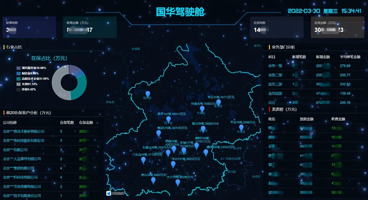 以数字化推动再担保创新业务高质量发展。一是为国华担保、石创担保两家直保子企业开通业务系统小程序,实现随时随地审批业务、查询信息、到期提醒等移动办公功能,大幅提升业务审批效率。二是积极推进新版保后管理模块的升级改造,结合大数据实时监测以及人工下户打卡,实现小微项目业务系统轮巡保后功能,不仅提高了保后管理工作的及时性,更通过数字化手段有效提升保后精准风险定位,进一步提高北京再担保本部和子公司风险防范能力。三是积极推进银担系统直连,一季度已经初步实现了与交通银行的系统接口互联,后续将进一步打通上海银行等其他银行的系统互联,为批量化业务做技术准备。四是国华担保开通管理驾驶舱功能,可实时滚动更新业务数据和业务量排名,以龙虎榜的形式,充分调动业务人员工作干劲,为全力实现公司经营工作一季度开门红注入蓬勃动力。第一季度国华担保新增担保规模较去年同期增幅74%;石创担保新增规模较去年同期增幅180%。