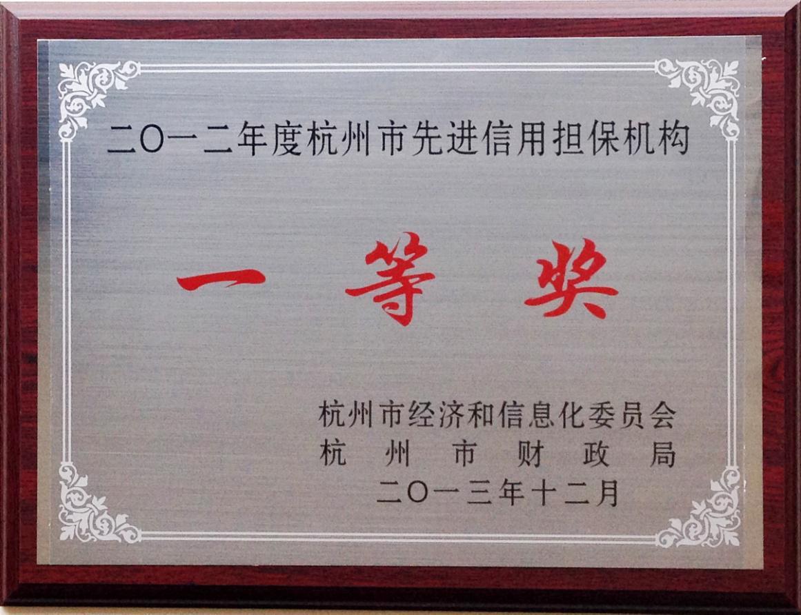 “杭州市先进信用担保机构一等奖”