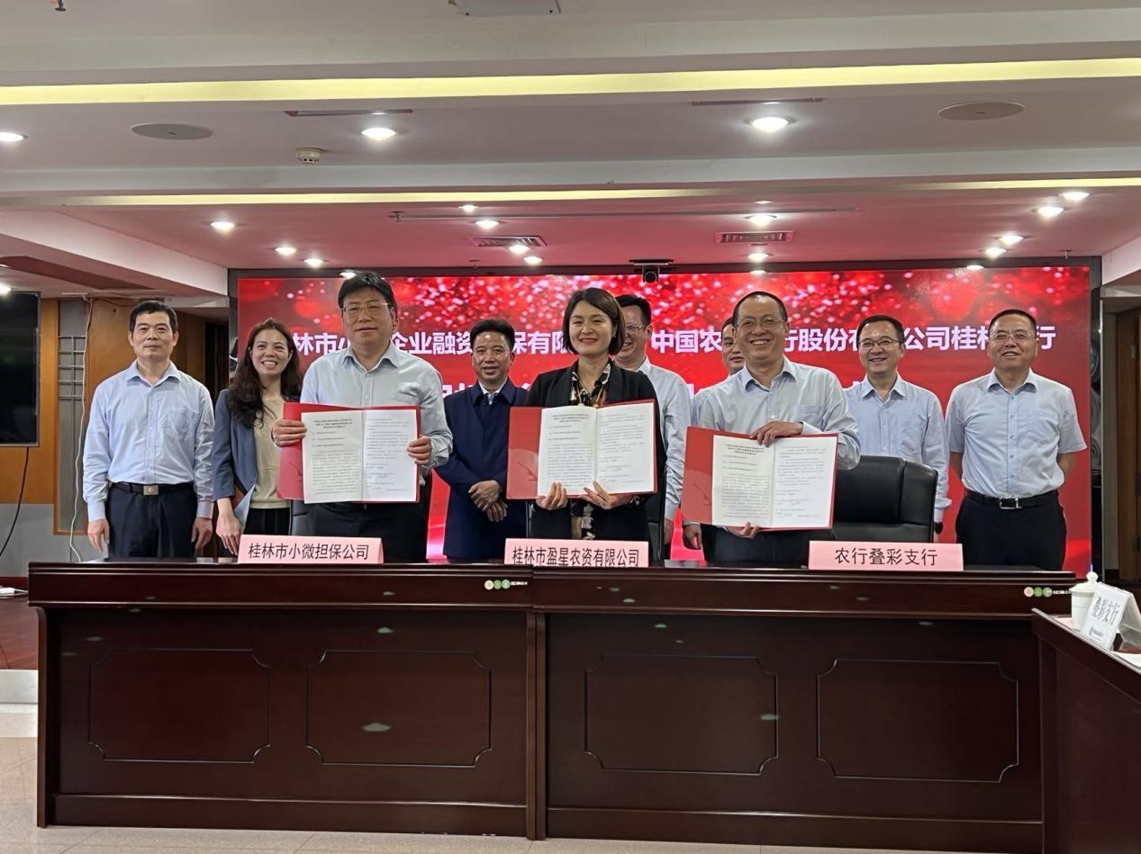 桂林小微担保与农行桂林分行、企业代表签订“乡村振兴保”担保意向合同现场