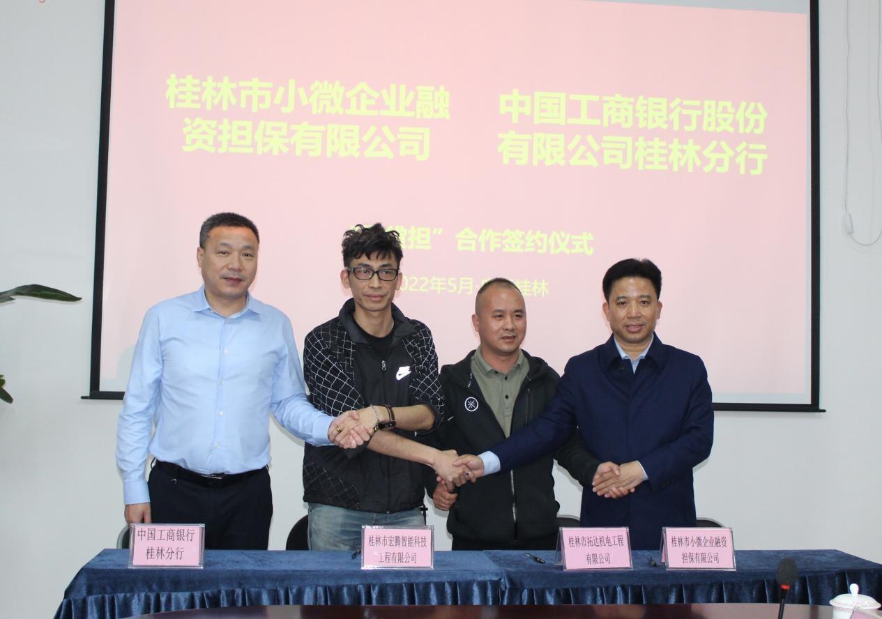 桂林小微担保与工行桂林分行、企业代表签订“见贷担”担保意向合同现场