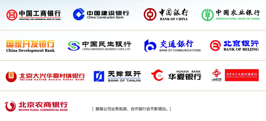 u 截止2013年底,我公司已与23家银行进行合作,主要包括:
