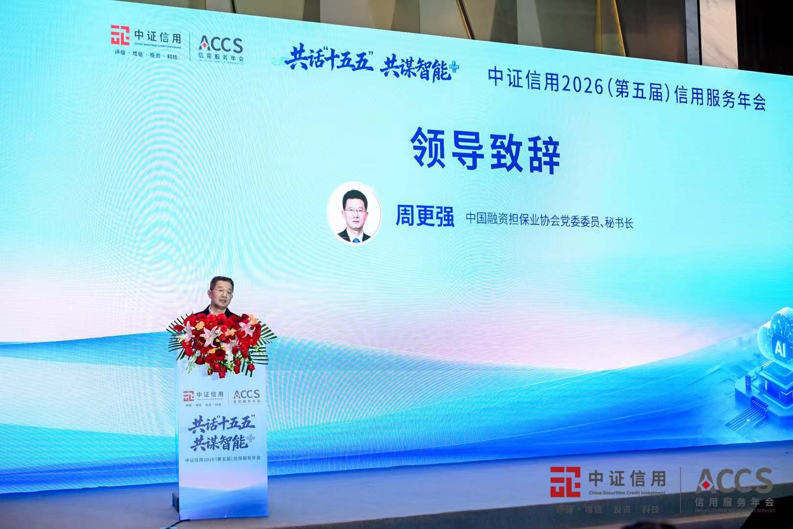 2026年4月9日,中证信用2026(第五届)信用服务年会在深圳召开,本届年会以“共话十五五·共谋智能+”为主题。中国融资担保业协会党委委员、秘书长周更强应邀出席并致辞。来自地方金融监管部门及全国多家信用增进机构、担保机构、证券公司、金融科技企业的代表参加会议。